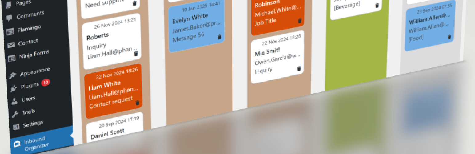 The plugin adds the Inbound Organizer menu to the WordPress Admin environment.